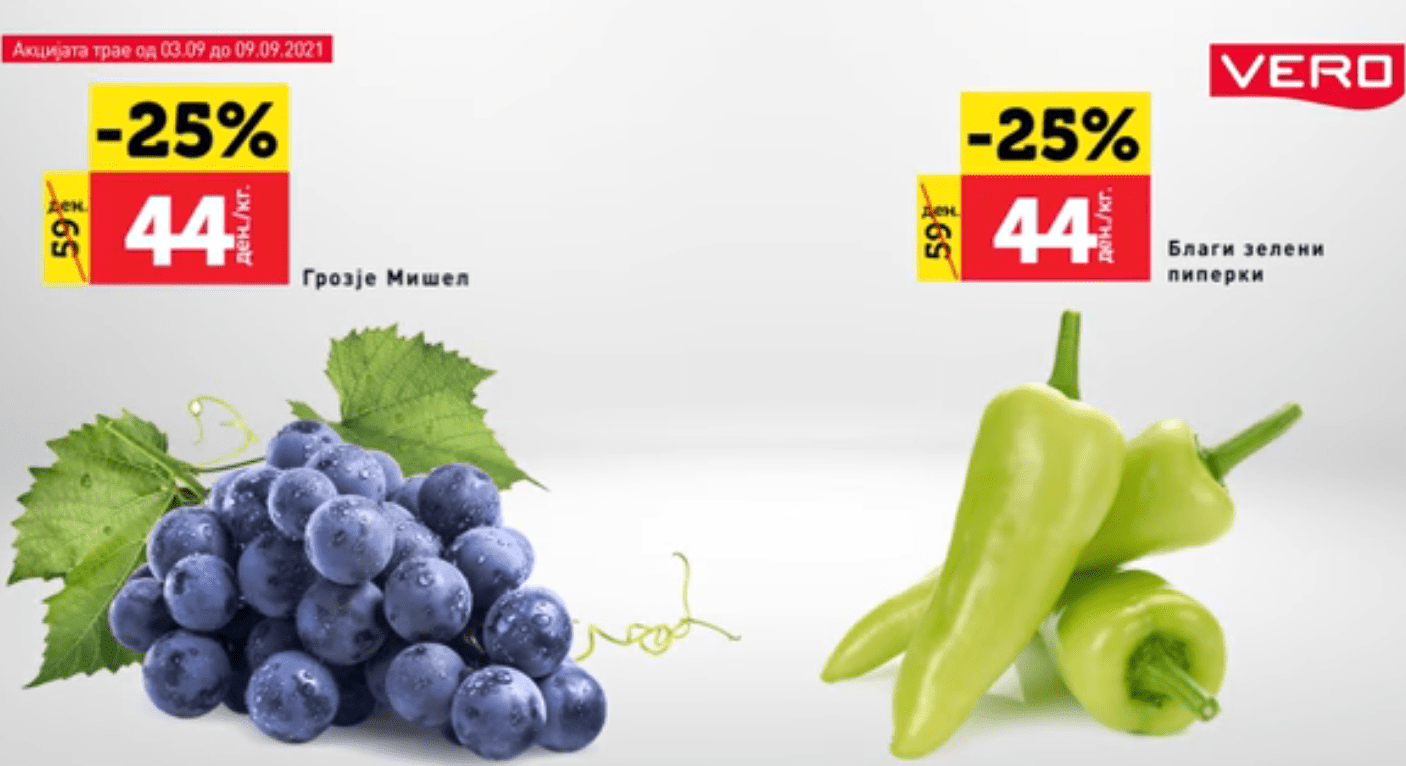 Грозје Мишел и благи зелени пиперки по одлична цена и намаление од 25% само во VERO маркети!