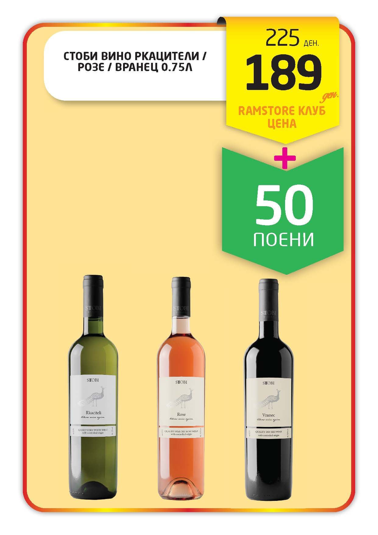 Стоби вино ркацители/розе/вранец на акција + 16% попуст + 50 поени само во Ramstore маркети!