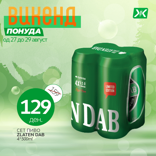 Естра понуда на сет Златен Даб 4х500ml по супер промотивна цена од 129 денари во Жито маркети!