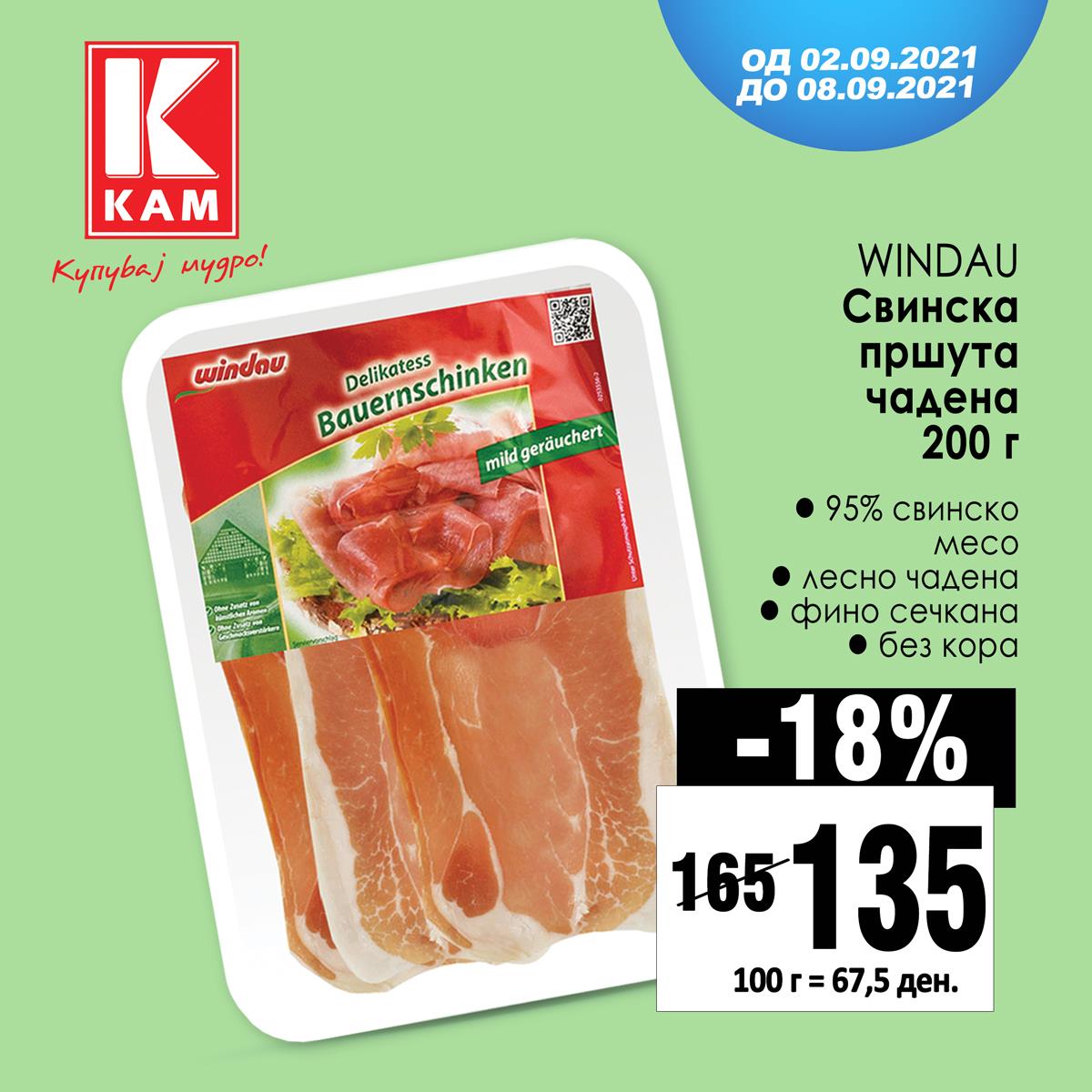 Свинска пршута чадена Windau по супер цена од 135 денари и намаление од 18% уште денес во КАМ маркети!