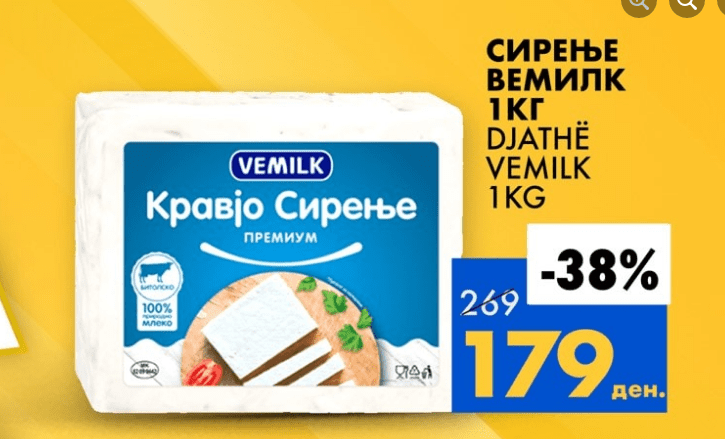 „Ценовна бомба“ на Vemilk кравјо сирење по одлична цена од 179 денари и 38% попуст во Миса маркети!