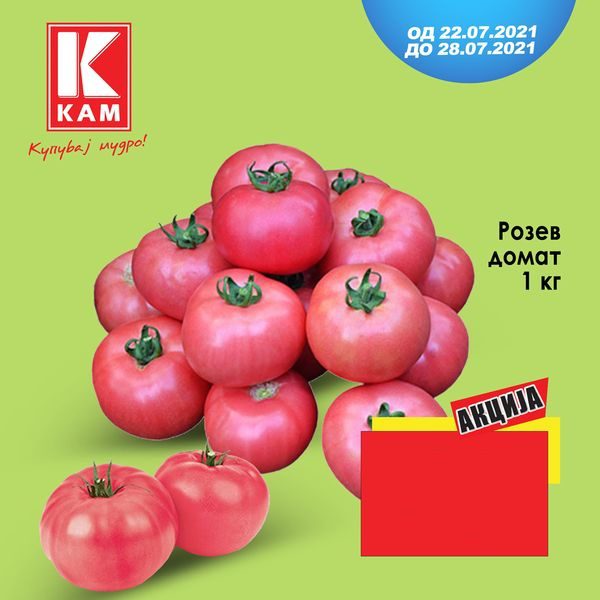 Розов домат по одлична цена од само 44 денари оваа недела во КАМ маркети! Побрзајте и искористете ја оваа одлична понуда...