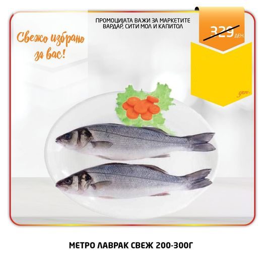 Свежо и здраво само за вас! Метро лаврак свежа риба по намалена цена од 259ден Рамсторе-Добиј повеќе, Живеј подобро! *Производот може...