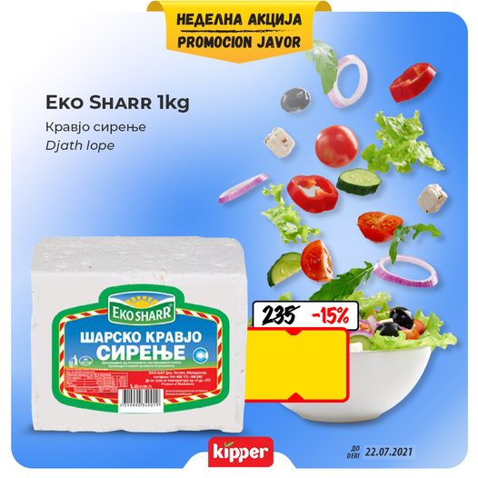 Кравјо сирење Eko sharr 1 kg. по одлична цена од само 199 денари во Kipper! Оваа акција трае до 22.07!