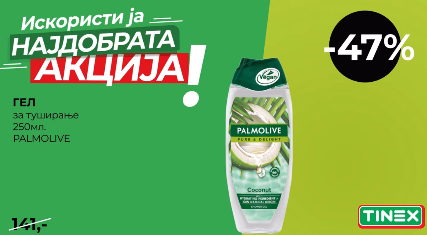 Гел за туширање Palmolive по одлична цена од 75 денари и 47% намаление – оваа недела само во Tinex! Побрзајте и...