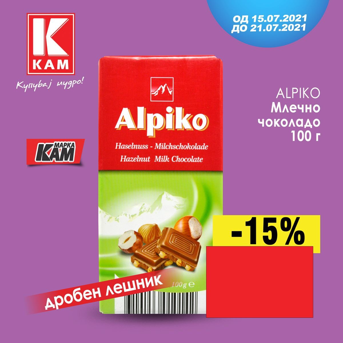 Млечно чоколадо Alpiko со дробен лешник по одлична цена и намаление од 15% – само во КАМ