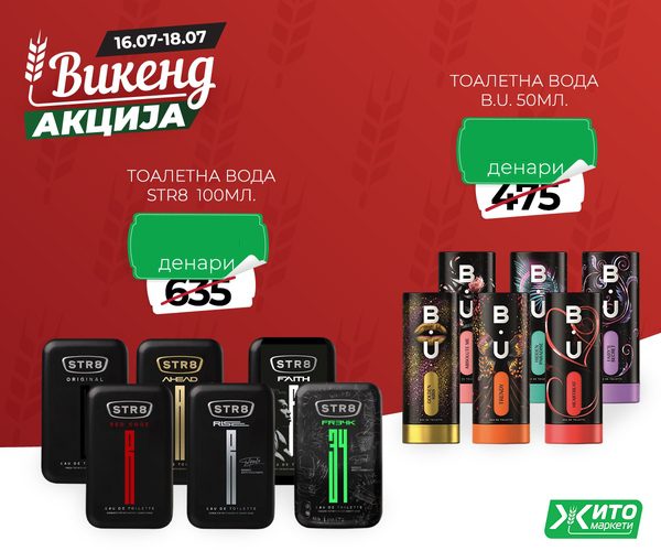 Викенд акција во Жито маркети на тоалетна вода B.U. и тоалетна вода STR8 со намаление од 42%