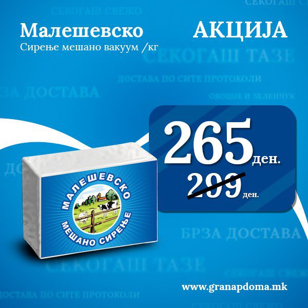 Акција на малешевско мешано сирење по одлична цена од 265 денари и намаление од 12% – само во Гранап маркети!
