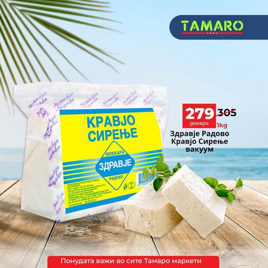 Одлична акција на Здравје Радово кравјо сирење во сите Тамаро маркети!