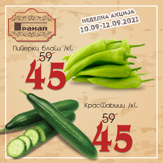 Пиперки благи и краставици по одлична цена од само 45 денари и намаление од 24% во Гранап маркети!