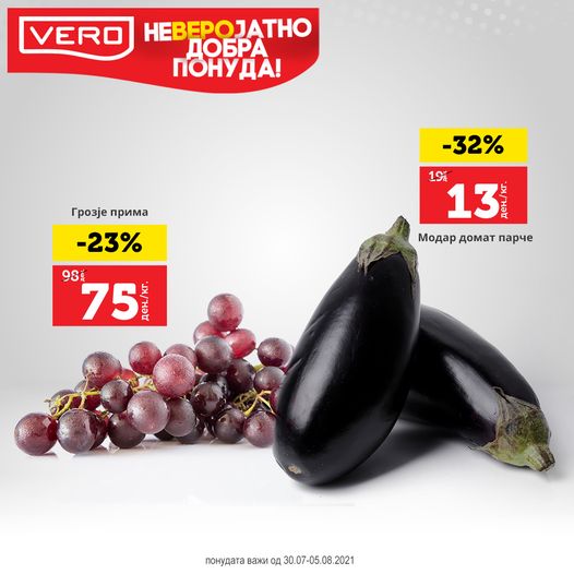 НеВЕРОјатно добра понуда на грозје прима и модар домат со намаление до 32% само во VERO маркети