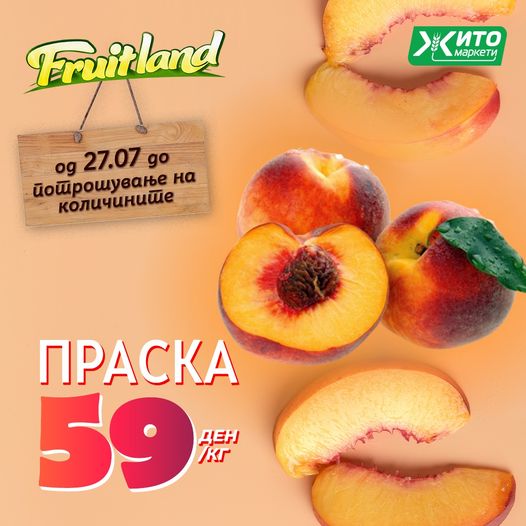 Праска по извонреден квалитет и супер цена од само 59 денари од Fruitland – само во Жито маркети!