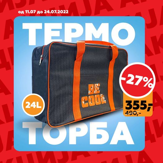 Побрзајте во Тинекс и купете ја вашата торба за ладење на пијалак и храна со супер акциска цена. Торбата има капацитет од 24л., ги одржува храната и пијалаците свежи, а идеална е за плажа за време на одморите.![]()