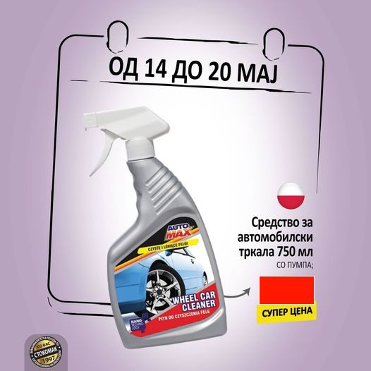 AutoMAx Чистачот на тркала e ефикасенo средство специјалено дизајнирано за чистење на сите челични и алуминиумски тркала. Ефикасно и , без...