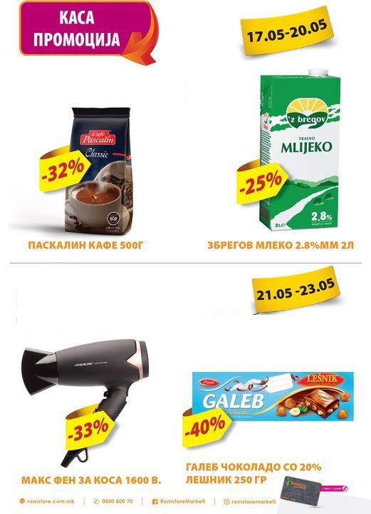 Каса промоција во сите наши маркети! Од 17.05 до 20.05 купете кафе Pascalin 500 гр. по одлична намалена цена од 135...