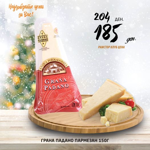 Празнична акција на Грана Падано пармезан по супер промотивна цена и 10% попуст во Ramstore маркети