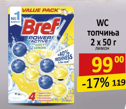 Одлична акција на WC топчиња Bref по екстра цена од 99 денари и попуст од 17% во Стокомак!