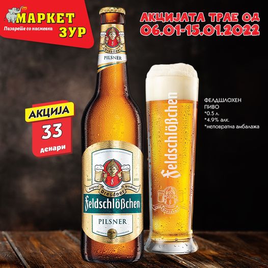 Фелди пиво 0.5л. по акциска цена од 33 денари, акција која трае до 15.01.!🍻