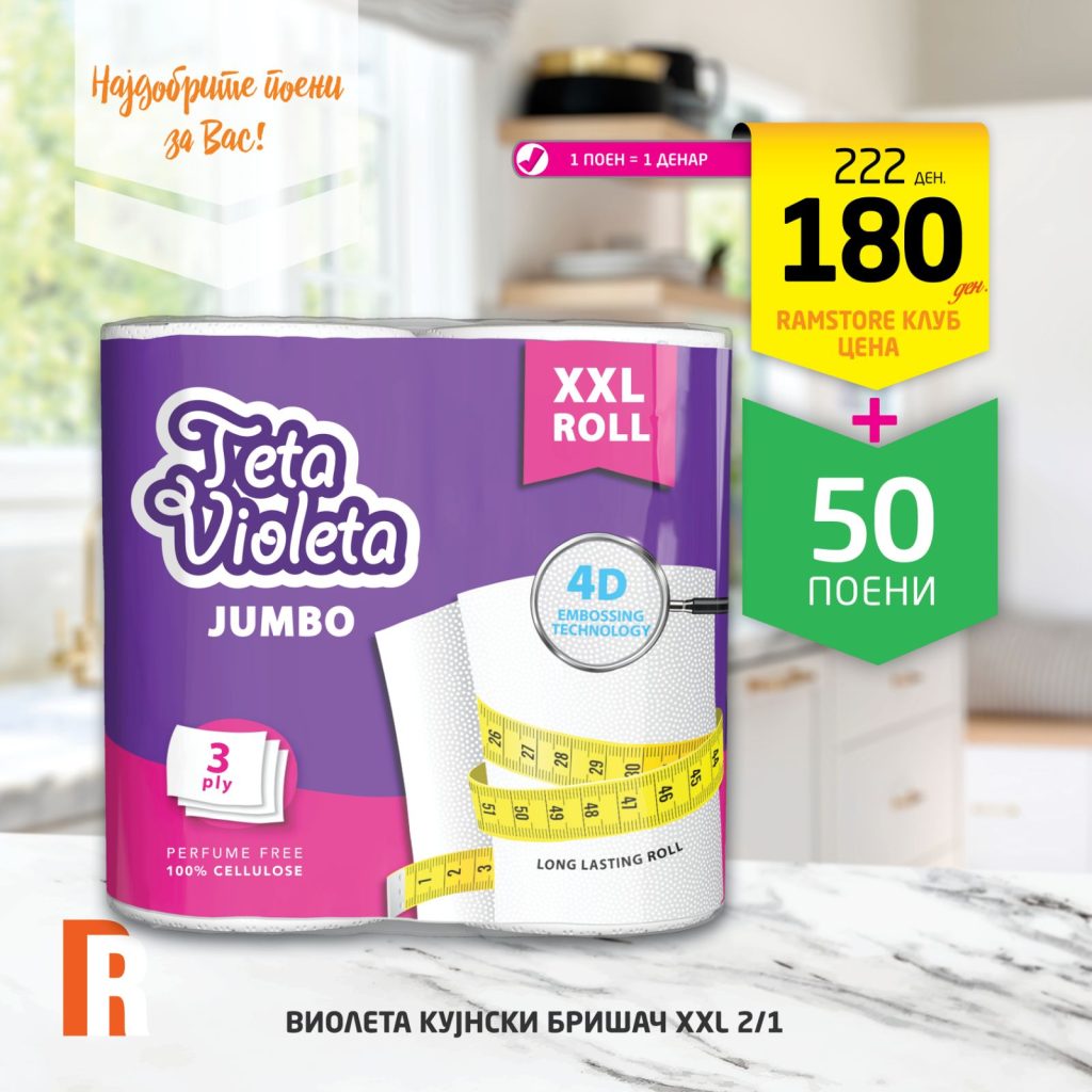 Виолета кујнски бришач XXL по супер цена од 180 ден. плус добивате 50 поени.