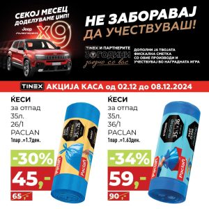 Не заборавај да учествуваш во големата наградна игра „ТИНЕКС И ПАРТНЕРИТЕ 30 години ЗАЕДНО СО ВАС“.