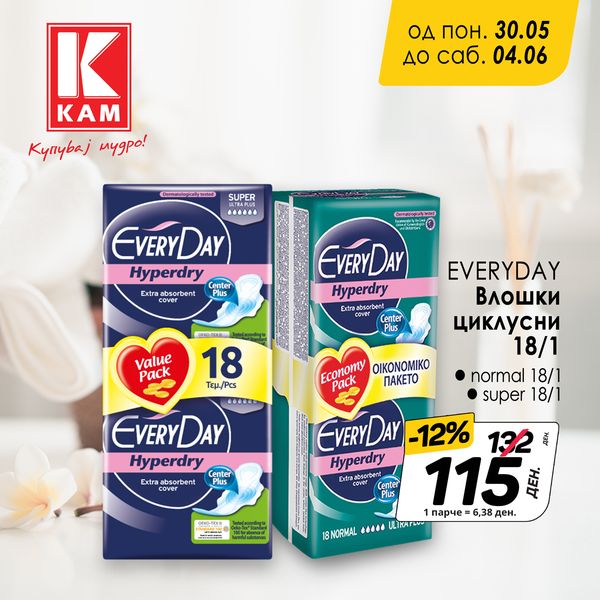 👉Everyday – хигиенски влошки по цена од 115 денари.