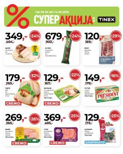 Tinex маркети ви нуди неверојатни попусти на месо и млечни производи од 08.05 до 14.05.2025: