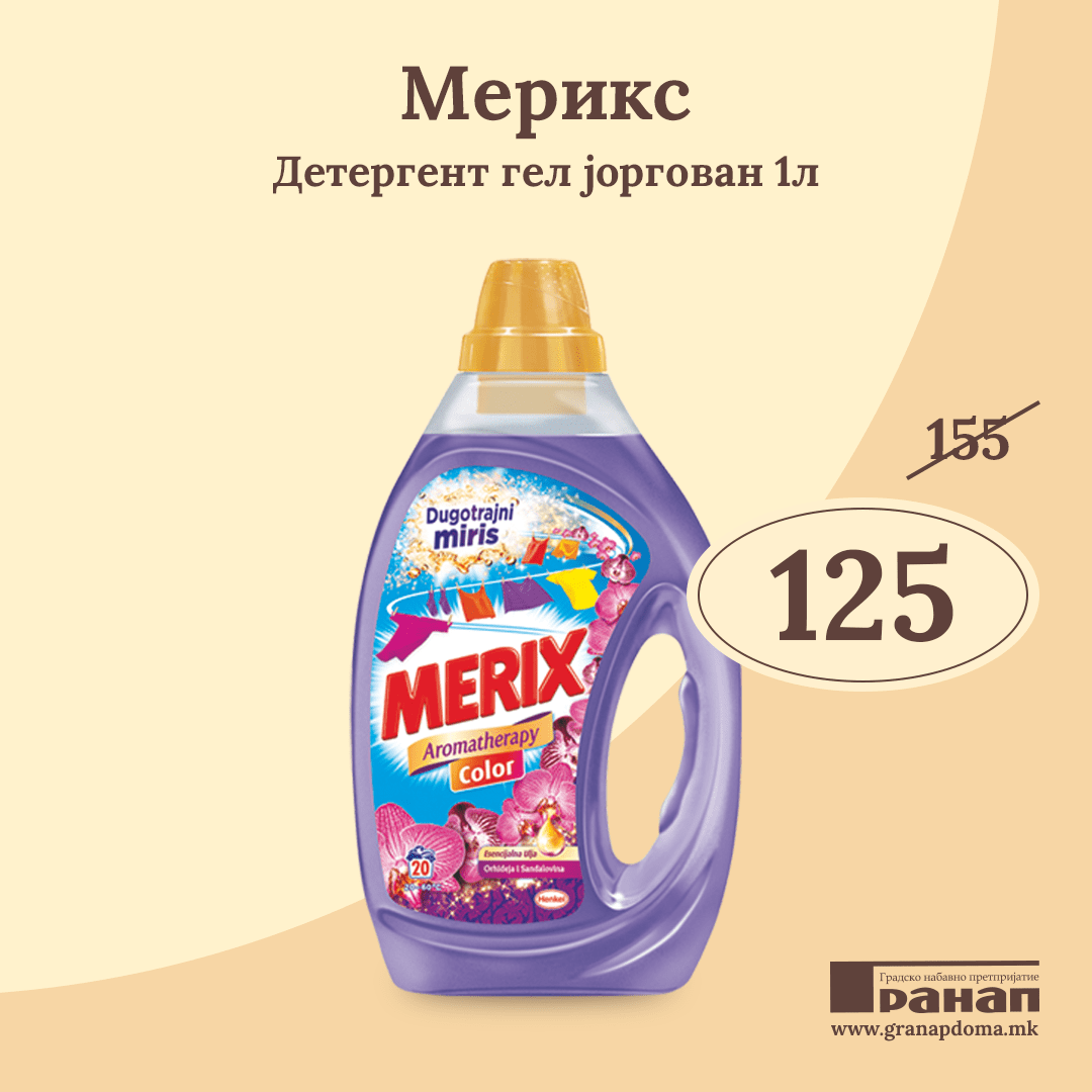 Набавете детергент Мерикс по одлична цена во сите Гранап маркети и чувајте ја вашата облека чиста и мека.