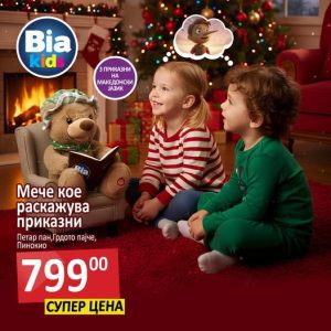 Мечето што раскажува приказни од Bia Kids, со 3 приказни на македонски јазик, е дел од празничната понуда во Стокомак и претставува одличен спој на игра, забава и учење. Совршен подарок што создава топли семејни моменти и детска радост.