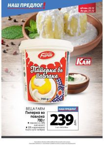 Bella Farm пиперка во павлака 700 г е достапна по цена од 239 денари во KAM, што значи поволна цена за квалитетен и омилен традиционален производ.